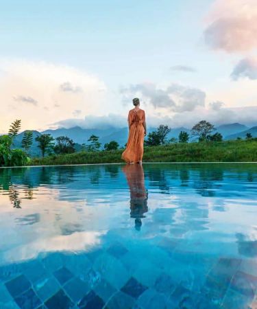 Santani’s minimalist design philosophy invites balance by removing distractions and reconnecting you with nature. Set on a former tea estate overlooking the Knuckles Mountain Range, the glass-walled chalets blend indoor and outdoor living. The tri-level spa, carved into the hillside, features thermal pools, steam rooms, and open-air treatment spaces. With daily yoga, meditation, and authentic Ayurvedic therapies, Santani offers a serene environment for deep healing and renewal.